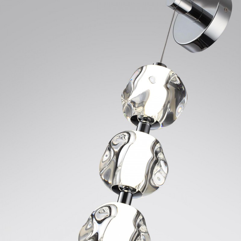 Jemstone серия смотрится как истинно дизайнерское произведение - роскошное и нестандартное: невероятно красивые плафоны необычной формы в виде сжатого камня; материал плафона - высококачественный акрил фирмы Mitsubishi (Япония), который обладает великолепными светопреломляющими и светоотражающими свойствами; 100% имитация хрусталя – характерные переливы, сверкание, идеальная прозрачность. В модельный ряд линии входят бра 2-х видов, каскадные люстры (высота 2 и 2,5м, удобный механизм регулировки струн ), одиночные подвесы и подвесы-«бусы» с системой крепления 2 в 1- накладной и встроенный монтаж в комплекте.