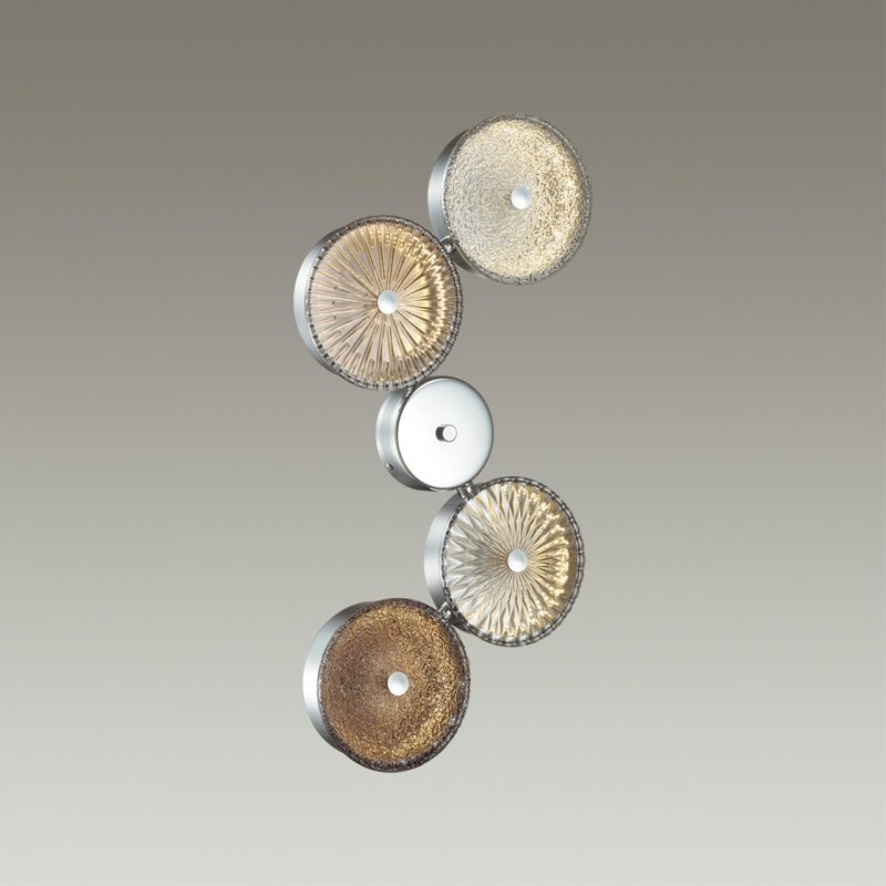 Линия светильников Caramella получила своё название благодаря сходству с карамельными конфетами. В ней сочетаются стекло приглушенных серо-коричневых оттенков, хромированный металл, разнообразные паттерны стёкол и современный LED источник света. Светильники Caramella прекрасно впишутся как в современные, так и в классические интерьеры, благодаря своему изящнуму дизайну. Из подвесных и настенных светильников линии можно создавать разнообразные композиции, внося в интерьер уникальыне акценты.