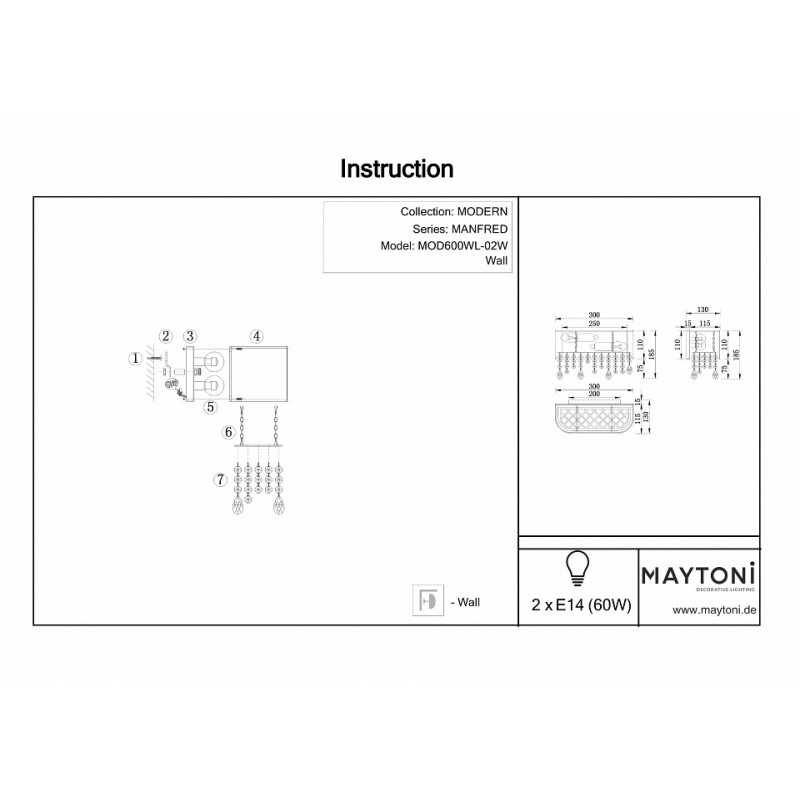 Накладной светильник Maytoni Manfred MOD600WL-02W ГЕРМАНИЯ
