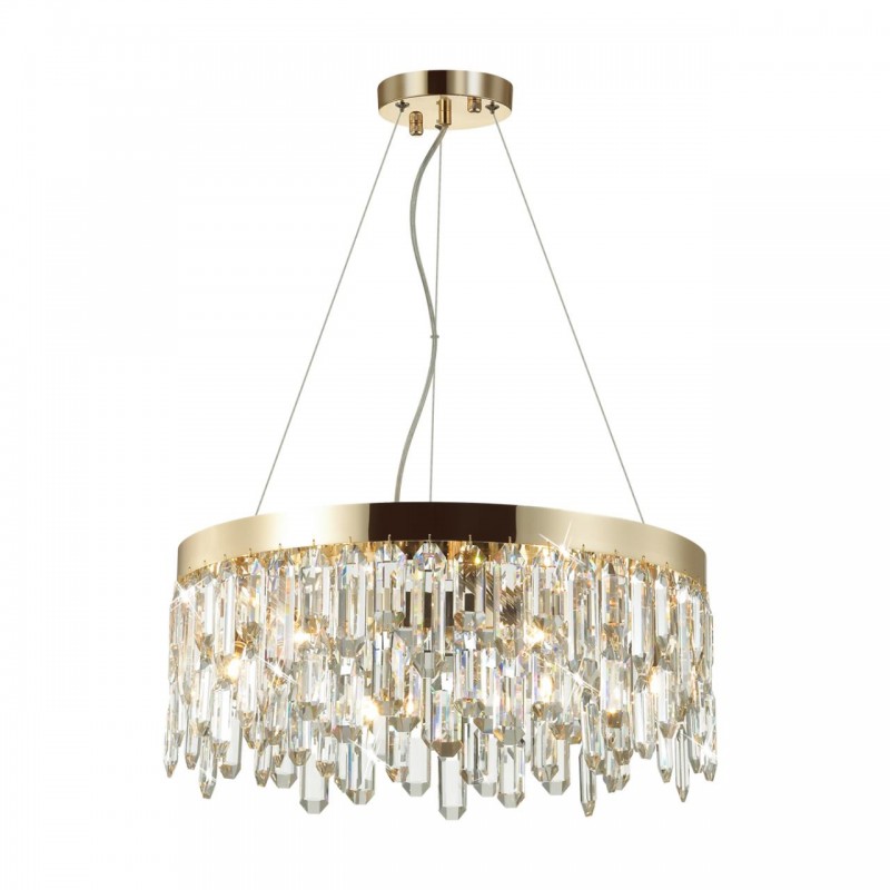 Линия потолочных и подвесных светильников Dakisa c каскадом хрустальных подвесок оригинальной объемной формы и основанием в цвете глянцевое золото выглядит современно, притягательно и стильно.