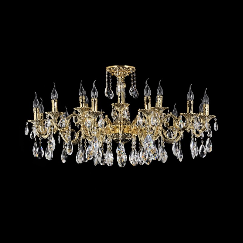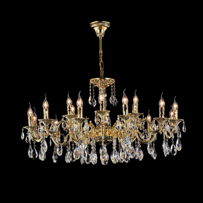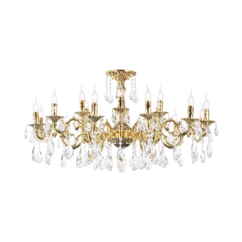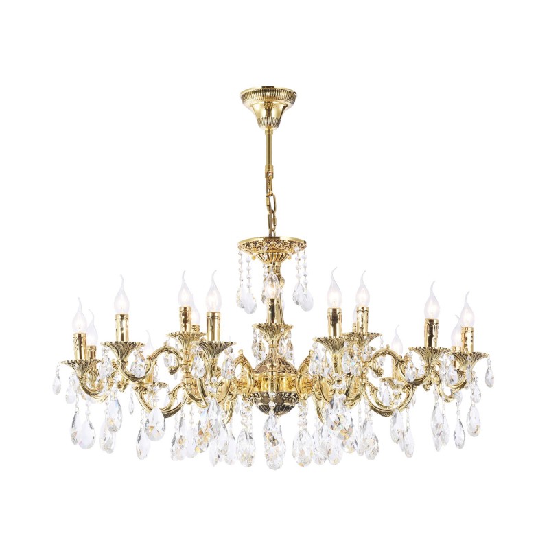 Благодаря использованию технологии литья арматура светильников украшена разнообразным рельефным декором. Гальваническое покрытие золотого цвета и черная патина покрывает все металлические части каркаса. Конструкцию украшают подвески из кристаллов различных огранок. Универсальное крепление "2 в 1" позволяет монтировать люстры с использованием цепи или без нее.
