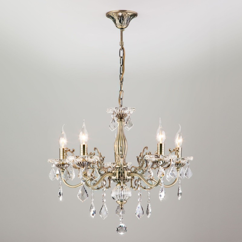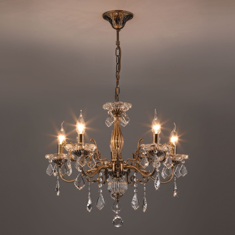 Люстра с хрусталем 3281/5 античная бронза / прозрачный хрусталь