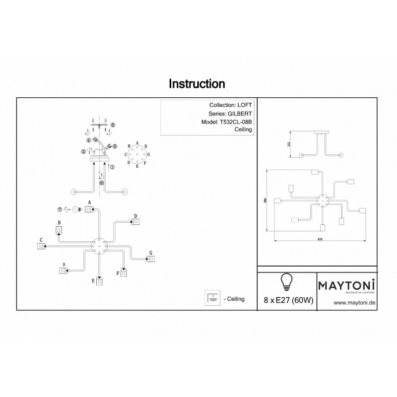 Потолочная люстра Maytoni Gilbert T532CL-08B