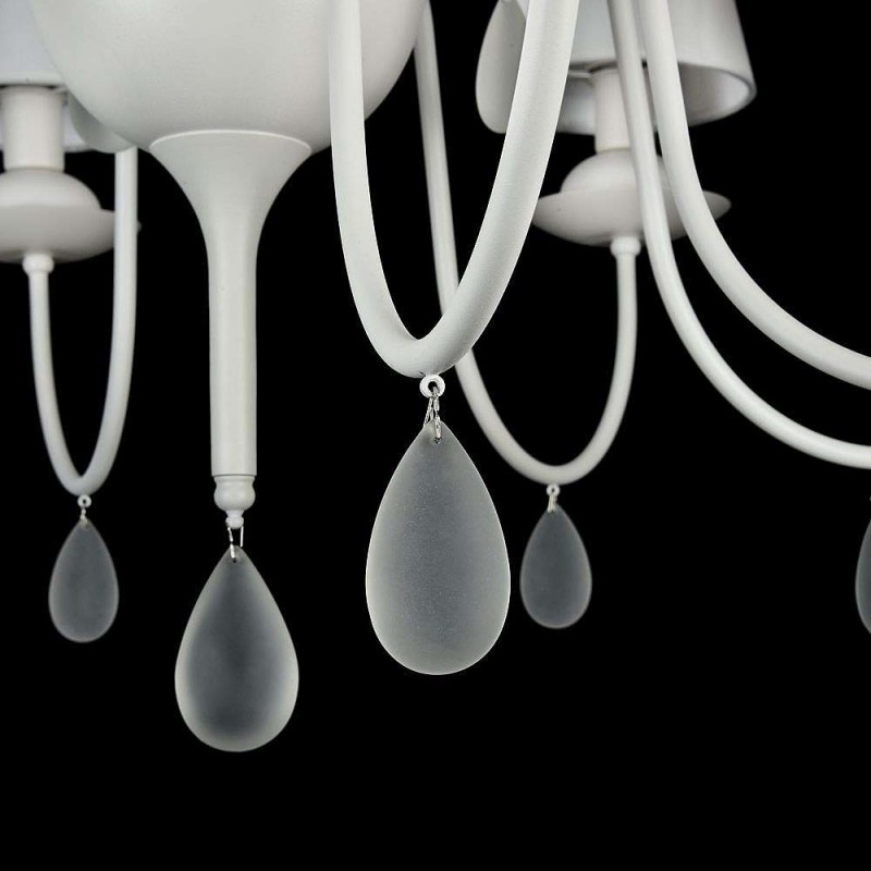 Дизайн светильников серии Eliza - это дуэт классики и современности. Акцент в данной серии сделан на белый цвет, в котором выполнена арматура, абажуры, сделанные из ткани на ПВХ, и каплевидные подвески из матового стекла