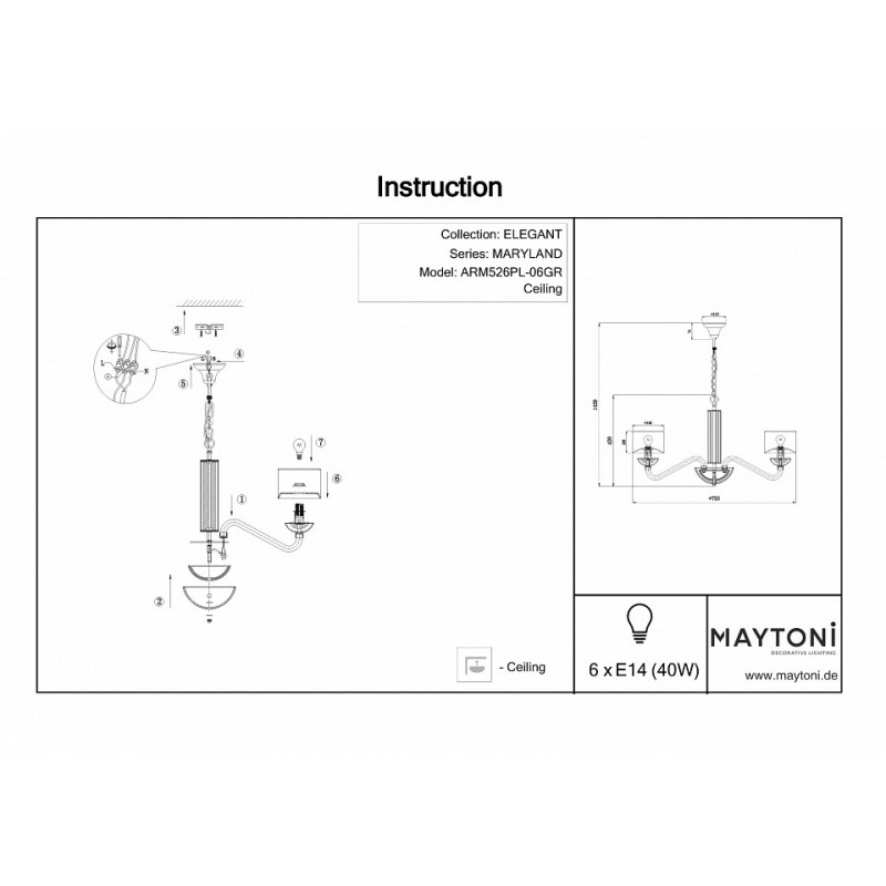 Подвесная люстра Maytoni Maryland ARM526PL-06GR ГЕРМАНИЯ