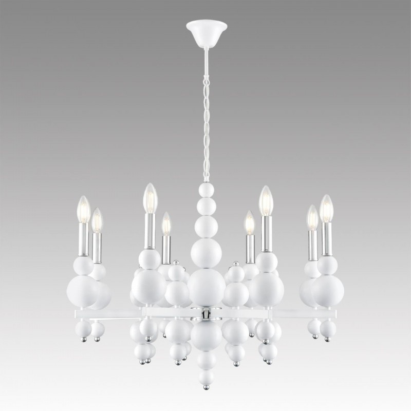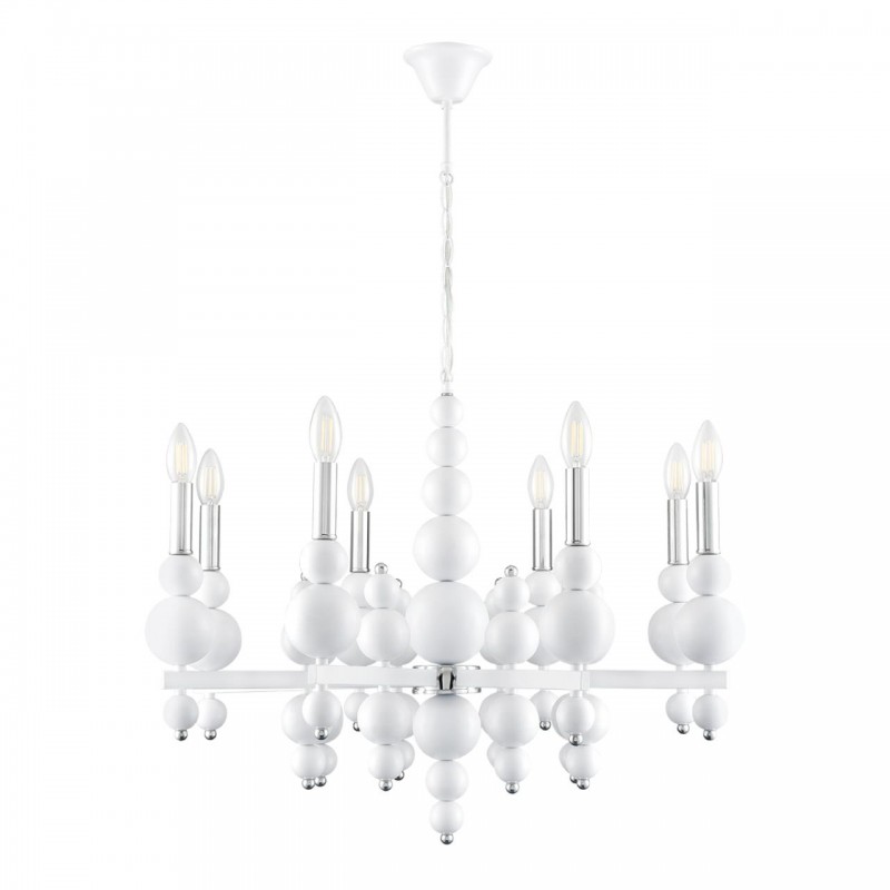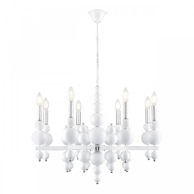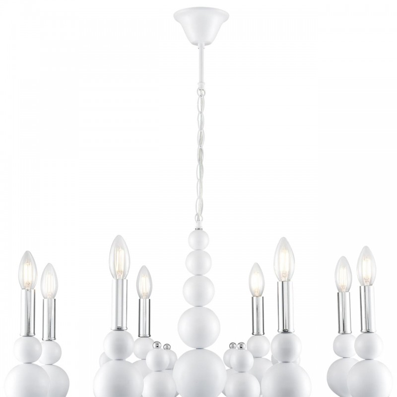 Светильники линии NANA имеют уникальный запоминающийся дизайн. Арматура светильников состоит их декоративных белых сферических элементов разного диаметра. А хромированные элементы в модели добавляют ей изысканности и очарования. В коллекции NANA имеются люстры на 6 и 8 ламп, а аткже бра на 1 лампу.