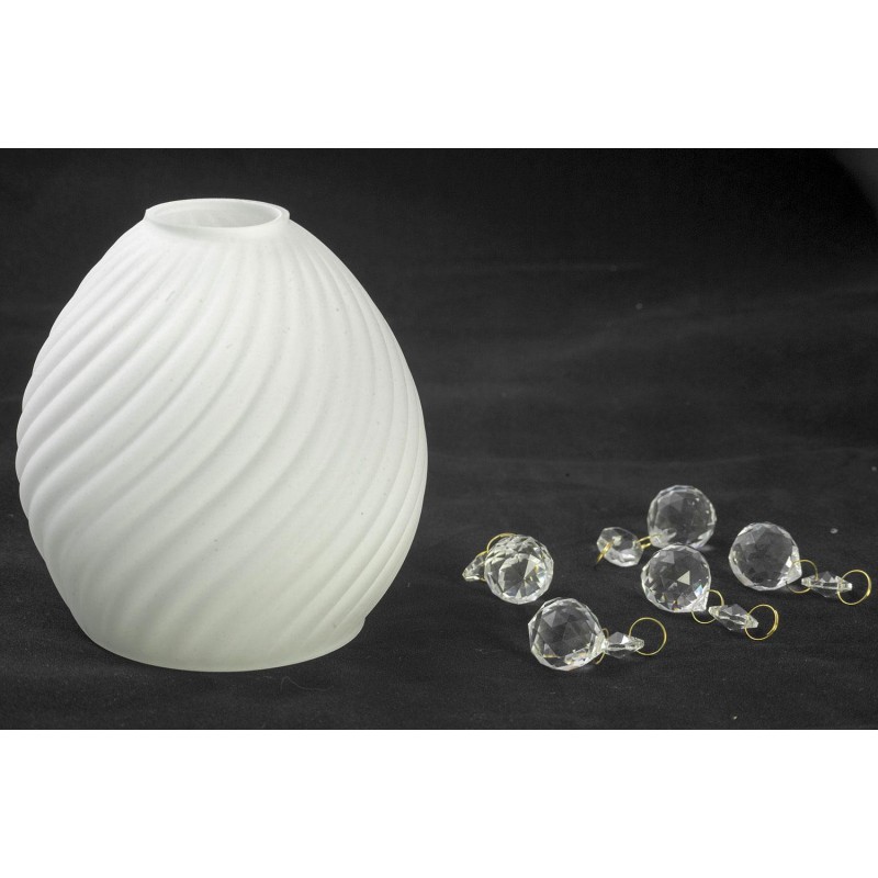 Прекрасное сочетание бронзы, белых рифленых плафонов и подвесок спрятанных между центральной колбой и плафонами. Люстра моментально впишется в классический интерьер небольшой и средней комнаты.
