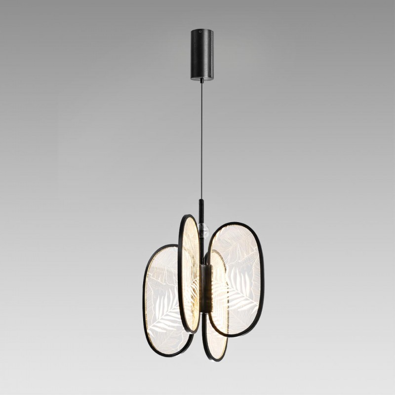 Линия светильников Piuma — не зря названа в честь пера, она словно парит в воздухе, воплощая лёгкость и воздушность линий. Рассеиватели выполнены из акрила и декорированы узором в виде перьев и тропических листьев, которые при включенном свете создают светящееся полотно, элегантно обрамлённое металлическим контуром в двух цветах (античная бронза и черный с лёгким эффектом брашинга). В светильнике используется Led источник света. Подвесы представлены в двух размерах - 330мм и 500мм.