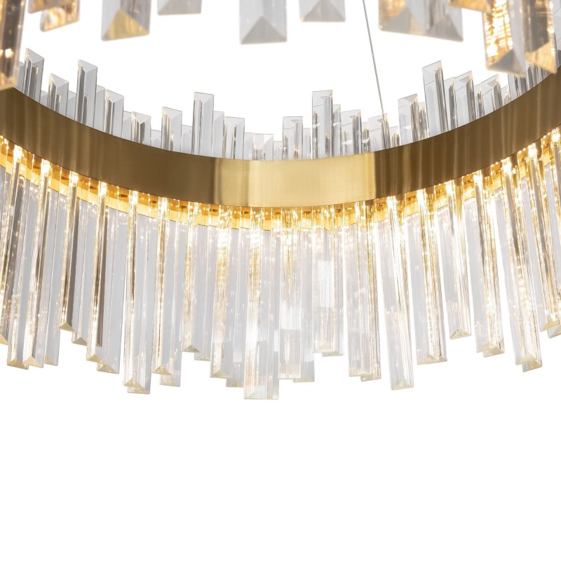 Современный дизайн часто вдохновляется природными формами, а серия Chalice повторяет одну из них, формируя облик струящегося водопада света. Симметрично расположенный декор создает динамичный рисунок переливающихся волн, а лучи света, преломляясь в стеклянной поверхности, подчеркивают иллюзию движения. Металлическая арматура окрашена в золотой оттенок, который легко интегрируется как в современные, так и в классические обстановки. Визуально незаметные тросы поддерживают идею невесомости композиции, а LED-источники света обеспечивают яркое освещение. Три подвесные люстры различного диаметра и мощности позволяют выбрать оптимальный вариант с учетом размеров помещения. Серия займет достойное место в гостиных, помещениях HoReCa, выполненных в стиле ар-деко, модерн, неоклассика, эклектика.