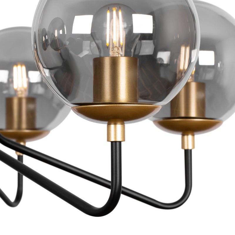 Серия современных светильников Moricio с узнаваемым дизайном и оригинальной палитрой. Актуальное сочетание цвета латуни и матового черного в арматуре. Сферические плафоны идеально вписываются в геометрию светильника. Глянцевое стекло отражает модный тренд на округлые формы и радует нетривиальным дымчатым цветом. Серия включает подвесные светильники на 6 и 8 ламп, одиночный подвес и бра. С помощью серии Moricio легко организовать комплексное многоуровневое освещение. Динамичный дизайн интегрируется в современные интерьеры, выполненные в стиле лофт, хай-тек, минимализм.