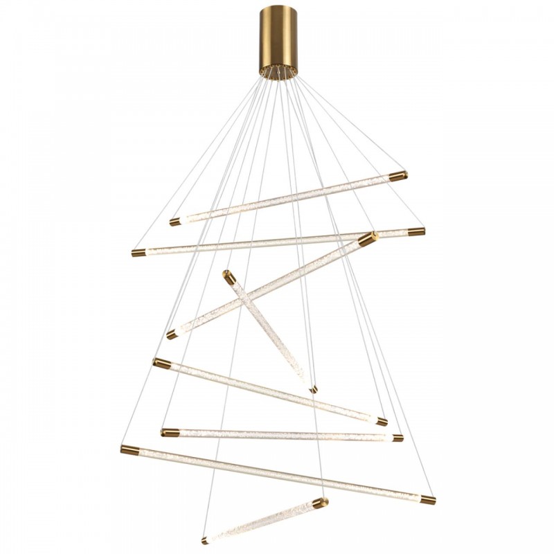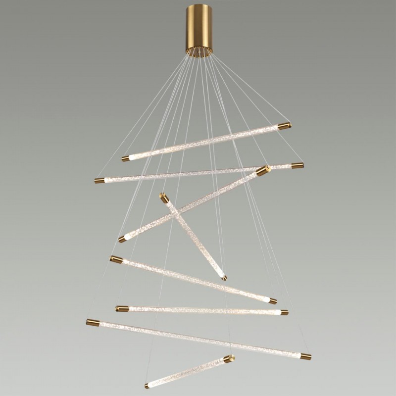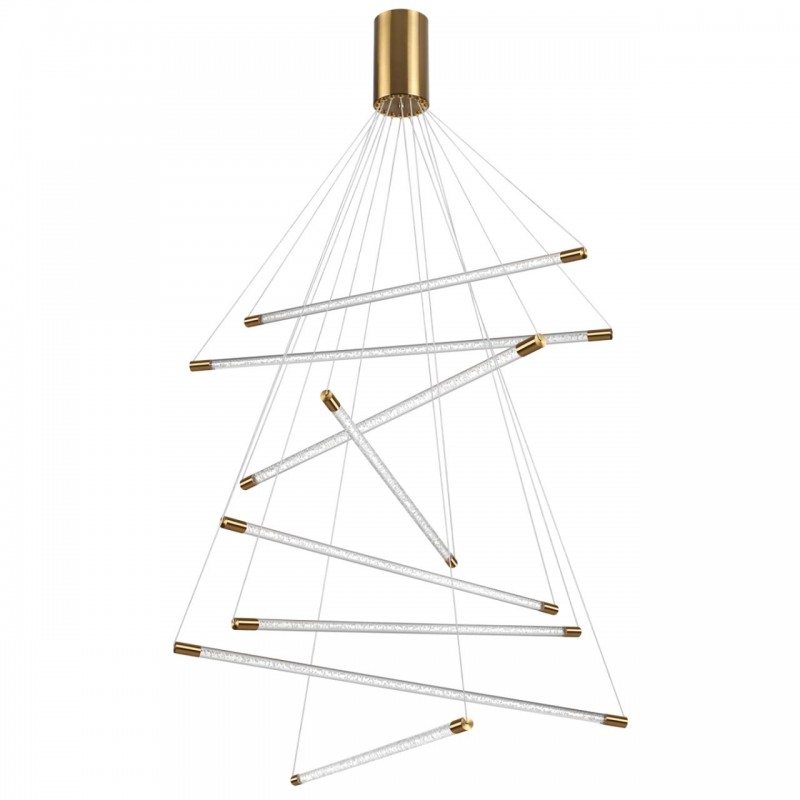 Линейка светильников в золоте выполнена в прозрачном акриле с эффектом очаровательных пузырьков создаст невероятное легкое невесомое пространство за счет тонкости плафонов, будет давать мягкий и комфортный свет. Подвесной светильник со светящимися плафонам словно мечами джедая создадут динамичное и эффектное пространство