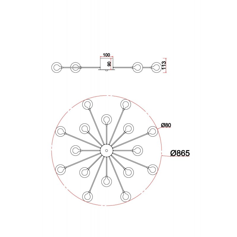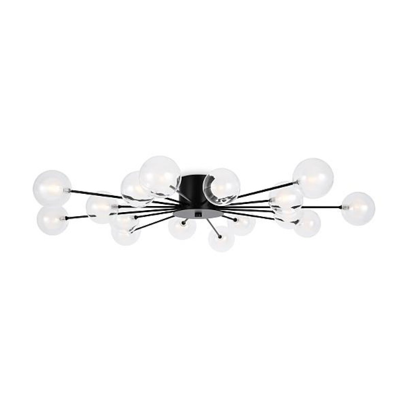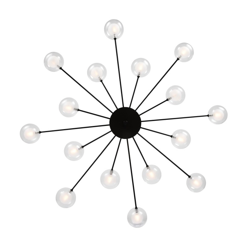Celebrity ー это изобретательное произведение искусства. Источник света представлен двумя видами плафонов: двойное стекло и акриловое стекло в сочетании с латунной металлической окантовкой. Эти маленькие огоньки раскинуты по всей площади светильника и создают ощущение, что в вашей квартире есть свое небольшое звёздное небо. Плафоны расположены на концах арматур, которые по кругу выходят из цилиндра в центре. Материал плафонов: стекло, акрил. Цвета арматуры: черный и золото.