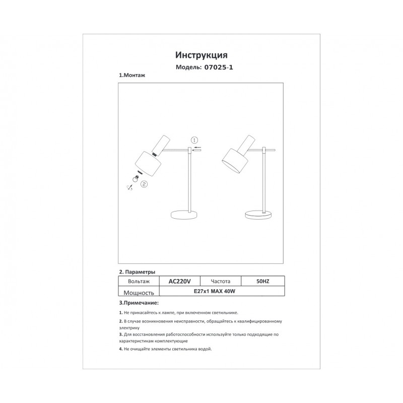 Настольная лампа Орфей 07025-1