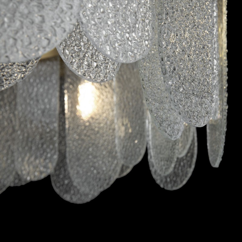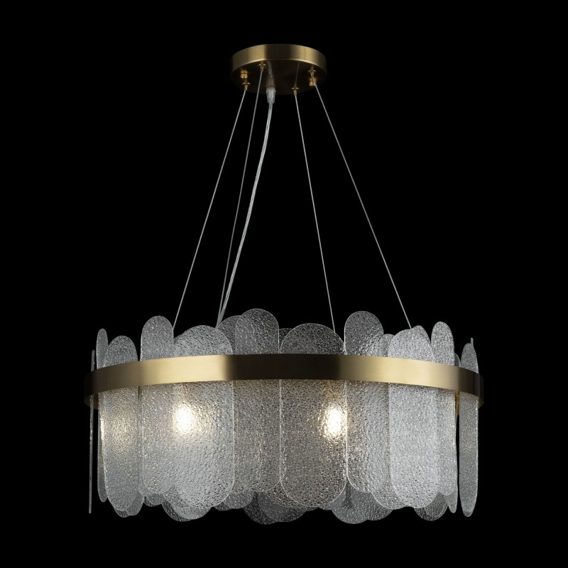 Изящный силуэт светильников Deserto легко интегрируется как в классический, так и в современный интерьер, благодаря удачному сочетанию традиционной палитры и трендового декора. Металлическая арматура благородного оттенка латуни служит идеальной оправой для стеклянных элементов. Их модная фактурная поверхность создает эффект «замороженного стекла». Такой прием добавляет дизайну индивидуальности и образует красивую игру световых бликов и переливов – лучи света мягко преломляются рельефным узором. Серия включает две подвесные люстры различного диаметра, а также бра для эффектной зональной подсветки. Элегантные светильники отлично подойдут для интерьеров в стиле неоклассика, ар-деко, модерн, эклектика.