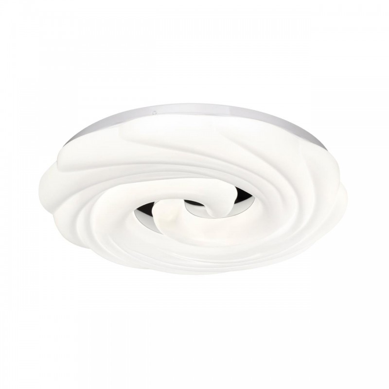 Светильник 7675/DL линии AGAP состоит из металлического основания (базы) и пластикового рассеивателя. Материал рассеивателя - высококачественный пластик марки PMMA 2.0 белого цвета с матовой поверхностью и рельефной структурой. Пластик обеспечивает светильнику равномерное рассеивание и хорошее светопропускание. Форма плафона: круглая, декорирована центральной вставкой из пластика, цвет серебро. Степень защиты IP43 позволяет использовать светильник в определенных зонах влажных помещений. В комплект входит заменяемый LED модуль с линзами, мощностью 48Вт, которая соответствует лампе накаливания 440Вт. А также пульт ДУ (с креплением на стену), с помощью которого осуществляется плавное изменение цветовой температуры 3000-6000К, изменение яркости, переход в режим переключения теплого/белого/холодного/ночного света. Светильник имеет функцию "память".