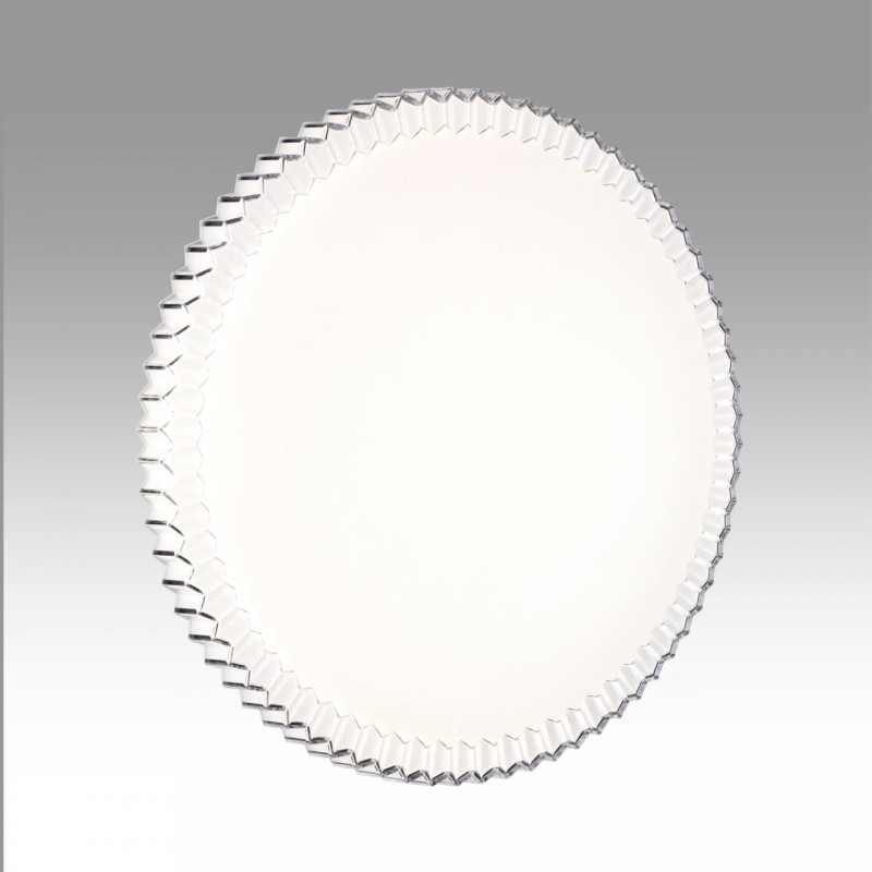Светильник 7673/EL линии ATIKO состоит из металлического основания (базы) и пластикового рассеивателя. Материал рассеивателя - высококачественный пластик марки PMMA 2.0 белого цвета с гладкой матовой поверхностью, обеспечивающий светильнику равномерное рассеивание и хорошее светопропускание. Форма плафона: круглая, декорирована рельефным ободом из пластика прозрачного цвета. Степень защиты IP43 позволяет использовать светильник в определенных зонах влажных помещений. В комплект входит заменяемый LED модуль с линзами, мощностью 70Вт, которая соответствует лампе накаливания 610Вт. А также пульт ДУ (с креплением на стену), с помощью которого осуществляется плавное изменение цветовой температуры 3000-6000К, изменение яркости, переход в режим переключения теплого/белого/холодного/ночного света. Светильник имеет функцию "память".