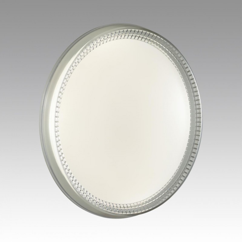 Светильник 7643/DL линии DEPAX состоит из металлического основания (базы) и пластикового рассеивателя. Материал рассеивателя - высококачественный пластик марки PMMA 2.0 белого цвета с гладкой матовой поверхностью, обеспечивающий светильнику равномерное рассеивание и хорошее светопропускание. Форма плафона: круглая, декорирована рельефным ободом из пластика прозрачного цвета. Благодаря прозрачному ободу светильник имеет увеличенный угол рассеивания света. Степень защиты IP43 позволяет использовать светильник в определенных зонах влажных помещений. В комплект входит заменяемый LED модуль с линзами, мощностью 48Вт, которая соответствует лампе накаливания 460Вт. Источник света имеет комфортную цветовую температуру 4000К (белый свет).