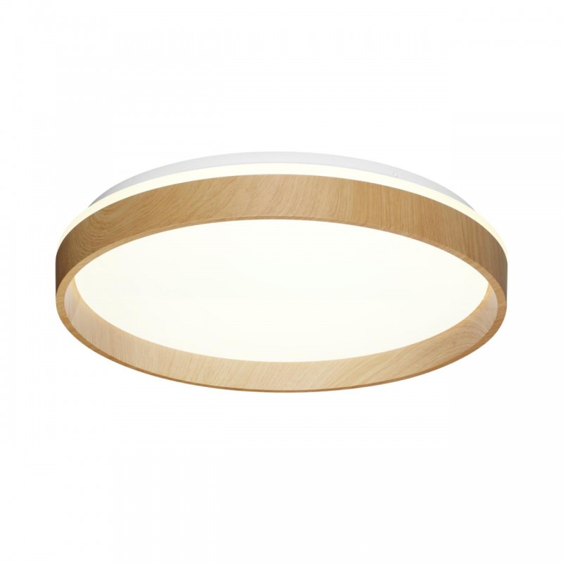 Светильник 7684/EL линии GARI WOOD состоит из металлического основания (базы) и пластикового рассеивателя. Материал рассеивателя - высококачественный пластик марки PMMA 2.0 белого цвета с матовой поверхностью, обеспечивающий светильнику равномерное рассеивание и хорошее светопропускание. Форма плафона: круглая, декорирована ободом "под дерево" из пластика коричневого цвета. В основание обода со стороны потолка добавлена вставка из светопропускающего пластика, благодаря которой потолок красиво подсвечивается. Степень защиты IP43 позволяет использовать светильник в определенных зонах влажных помещений. В комплект входит заменяемый LED модуль с линзами, мощностью 70Вт, которая соответствует лампе накаливания 610Вт. А также пульт ДУ (с креплением на стену), с помощью которого осуществляется плавное изменение цветовой температуры 3000-6000К, изменение яркости, переход в режим переключения теплого/белого/холодного/ночного света. Светильник имеет функцию "память".