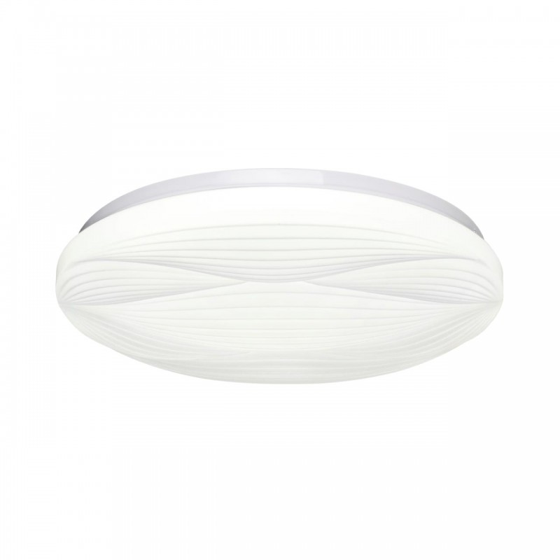 Светильник 7686/EL линии HIMAR состоит из металлического основания (базы) и пластикового рассеивателя. Материал рассеивателя - высококачественный пластик марки PMMA 2.0 белого цвета с матовой поверхностью. Пластик обеспечивает светильнику равномерное рассеивание и хорошее светопропускание. Форма плафона: круглая, декорирована рельефом из пластика в виде узора белого цвета. Степень защиты IP43 позволяет использовать светильник в определенных зонах влажных помещений. В комплект входит заменяемый LED модуль с линзами, мощностью 70Вт, которая соответствует лампе накаливания 610Вт. А также пульт ДУ (с креплением на стену), с помощью которого осуществляется плавное изменение цветовой температуры 3000-6000К, изменение яркости, переход в режим переключения теплого/белого/холодного/ночного света. Светильник имеет функцию "память".