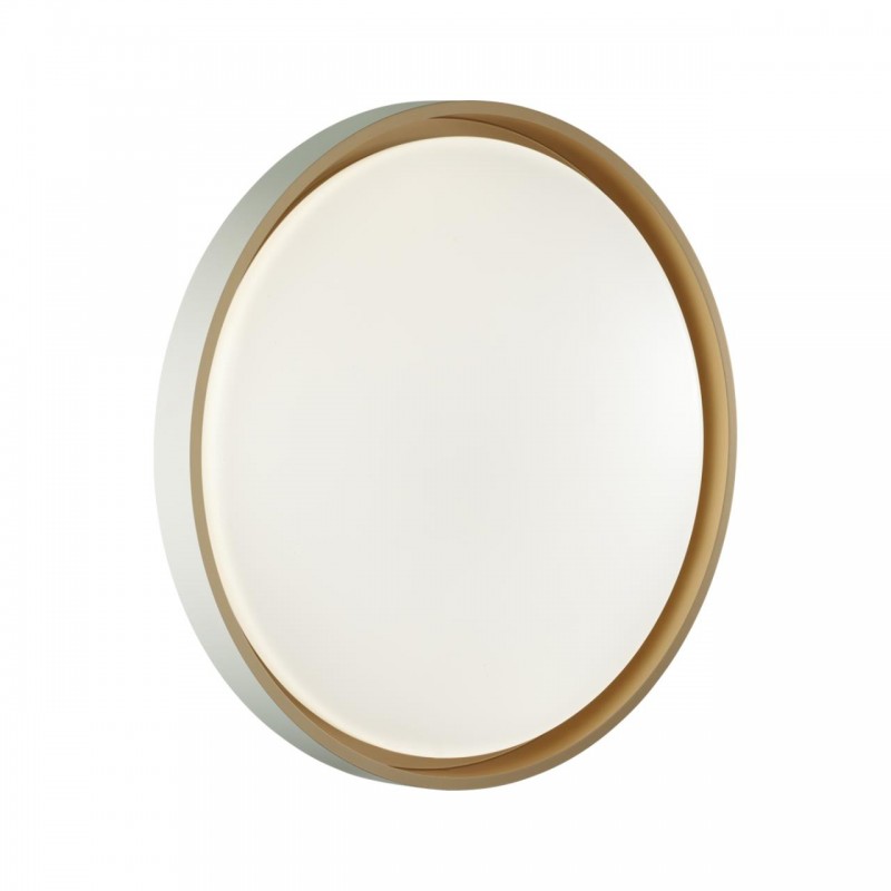Светильник 7645/DL линии KISIL состоит из металлического основания (базы) и пластикового рассеивателя. Материал рассеивателя - высококачественный пластик марки PMMA 2.0 белого цвета с матовой поверхностью. Пластик обеспечивает светильнику равномерное рассеивание и хорошее светопропускание. Форма плафона: круглая, декорирована ободом из пластика золотистого цвета с внутренней стороны и белого цвета с внешней стороны. Степень защиты IP43 позволяет использовать светильник в определенных зонах влажных помещений. В комплект входит заменяемый LED модуль с линзами, мощностью 48Вт, которая соответствует лампе накаливания 460Вт. Источник света имеет комфортную цветовую температуру 4000К (белый свет).