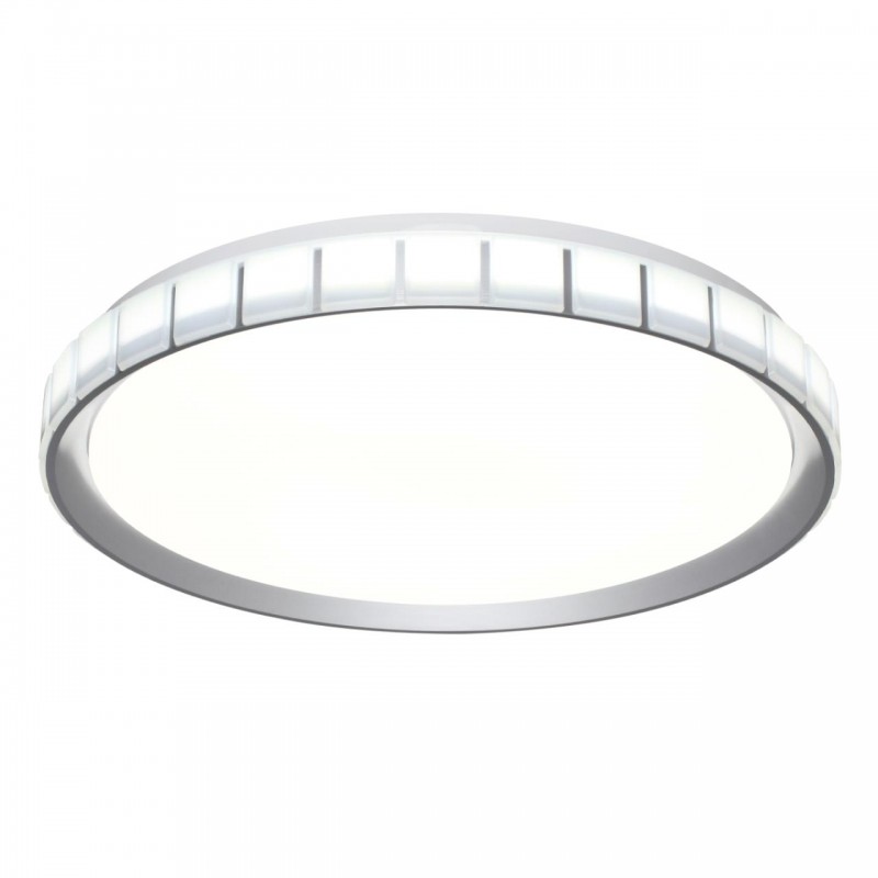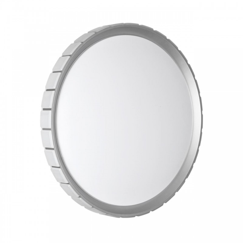 Светильник 7696/EL линии KUPI SILVER состоит из металлического основания (базы) и пластикового рассеивателя. Материал рассеивателя - высококачественный пластик марки PMMA 2.0 белого цвета с матовой, гладкой поверхностью. Пластик обеспечивает светильнику равномерное рассеивание и хорошее светопропускание. Форма плафона: круглая, декорирована рельефным пластиковым светопропускающим ободом, цвет серебро. Степень защиты IP43 позволяет использовать светильник в определенных зонах влажных помещений. В комплект входит заменяемый LED модуль с линзами, мощностью 70Вт, которая соответствует лампе накаливания 610Вт. А также пульт ДУ (с креплением на стену), с помощью которого осуществляется плавное изменение цветовой температуры 3000-6000К, изменение яркости, переход в режим переключения теплого/белого/холодного/ночного света. Светильник имеет функцию "память".