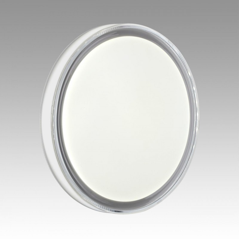 Светильник 7699/EL линии LAVEN состоит из металлического основания (базы) и пластикового рассеивателя. Материал рассеивателя - высококачественный пластик марки PMMA 2.0 белого цвета с матовой поверхностью, без текстуры. Пластик обеспечивает светильнику равномерное рассеивание и хорошее светопропускание. Форма плафона: круглая, декорирована светопропускающим ободом из гладкого пластика белого цвета. Степень защиты IP43 позволяет использовать светильник в определенных зонах влажных помещений. В комплект входит заменяемый LED модуль с линзами, мощностью 70Вт, которая соответствует лампе накаливания 610Вт. А также пульт ДУ (с креплением на стену), с помощью которого осуществляется плавное изменение цветовой температуры 3000-6000К, изменение яркости, переход в режим переключения теплого/белого/холодного/ночного света. Светильник имеет функцию "память".