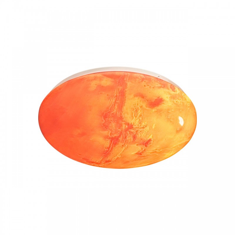 Светильник 7725/СL линии MARS состоит из металлического основания (базы) и пластикового рассеивателя. Материал рассеивателя - высококачественный пластик марки PMMA 2.0 цвета мульти с глянцевой поверхностью, обеспечивающий светильнику равномерное рассеивание и хорошее светопропускание. Форма плафона: круглая, декорирована орнаментом на плафоне с рисунком поверхности Марса. Рисунок на плафоне выполнен методом цифровой печати по технологии прямого нанесения красок на акриловый лист. С целью предотвращения выцветания красок поверх рисунка наносится слой белой краски. После выдувания плафона при высоких температурах красочный рисунок приобретает стойкость и долговечность. Степень защиты IP43 позволяет использовать светильник в определенных зонах влажных помещений. В комплект входит заменяемый LED модуль с линзами, мощностью 30Вт, которая соответствует лампе накаливания 270Вт. Источник света имеет комфортную цветовую температуру 4000К (белый свет).