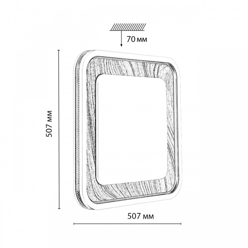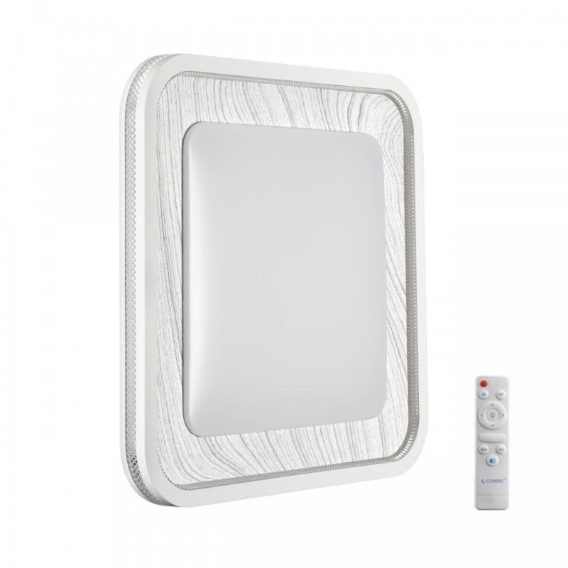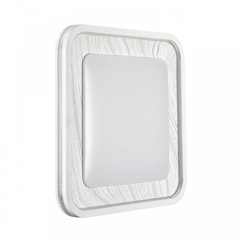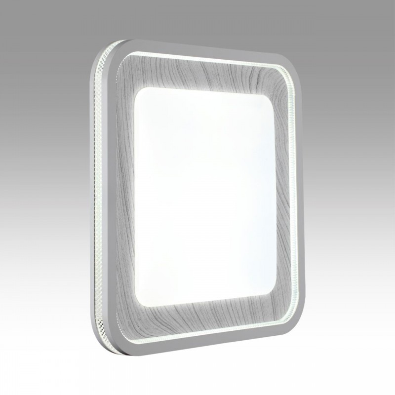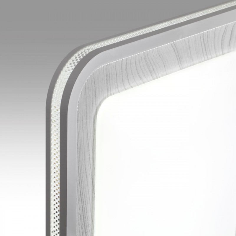 Светильник 7682/EL линии MAVI WOOD состоит из металлического основания (базы) и пластикового рассеивателя. Материал рассеивателя - высококачественный пластик марки PMMA 2.0 белого цвета с матовой поверхностью, без текстуры. Пластик обеспечивает светильнику равномерное рассеивание и хорошее светопропускание. Форма плафона: квадратная, декорирована ободом из пластика светло-серого цвета "под дерево" с прозрачной вставкой "под хрусталь". Степень защиты IP43 позволяет использовать светильник в определенных зонах влажных помещений. В комплект входит заменяемый LED модуль с линзами, мощностью 70Вт, которая соответствует лампе накаливания 610Вт. А также пульт ДУ (с креплением на стену), с помощью которого осуществляется плавное изменение цветовой температуры 3000-6000К, изменение яркости, переход в режим переключения теплого/белого/холодного/ночного света. Светильник имеет функцию "память".