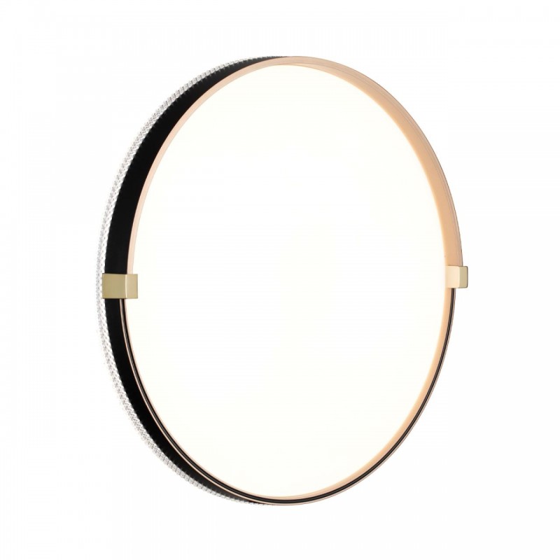 Светильник 7647/DL линии OLIDI BLACK состоит из металлического основания (базы) и пластикового рассеивателя. Материал рассеивателя - высококачественный пластик марки PMMA 2.0 белого цвета с матовой поверхностью, без текстуры. Пластик обеспечивает светильнику равномерное рассеивание и хорошее светопропускание. Форма плафона: круглая, декорирована ободом из пластика черного и золотистого цветов с прозрачной вставкой под хрусталь. Обод украшен металлическими клипсами, цвет золото. Степень защиты IP43 позволяет использовать светильник в определенных зонах влажных помещений. В комплект входит заменяемый LED модуль с линзами, мощностью 48Вт, которая соответствует лампе накаливания 460Вт. Источник света имеет комфортную цветовую температуру 4000К (белый свет).