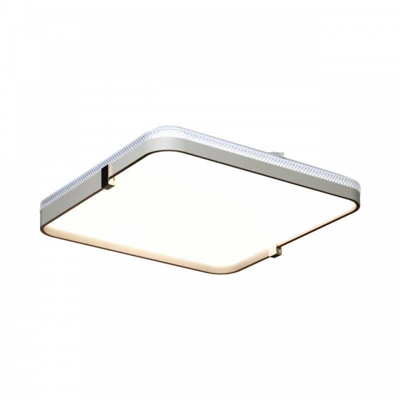 Светильник 7680/EL линии OLIDI WHITE состоит из металлического основания (базы) и пластикового рассеивателя. Материал рассеивателя - высококачественный пластик марки PMMA 2.0 белого цвета с матовой поверхностью, без текстуры. Пластик обеспечивает светильнику равномерное рассеивание и хорошее светопропускание. Форма плафона: квадратная, декорирована ободом из пластика белого и золотистого цветов с прозрачной вставкой под хрусталь. Обод украшен пластиковыми клипсами, цвет золото. Степень защиты IP43 позволяет использовать светильник в определенных зонах влажных помещений. В комплект входит заменяемый LED модуль с линзами, мощностью 70Вт, которая соответствует лампе накаливания 610Вт. А также пульт ДУ (с креплением на стену), с помощью которого осуществляется плавное изменение цветовой температуры 3000-6000К, изменение яркости, переход в режим переключения теплого/белого/холодного/ночного света. Светильник имеет функцию "память".