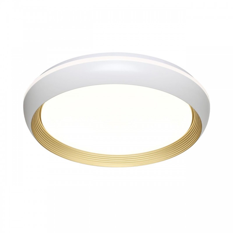 Светильник 7650/DL линии TOFIQ WHITE состоит из металлического основания (базы) и пластикового рассеивателя. Материал рассеивателя - высококачественный пластик марки PMMA 2.0 белого цвета с матовой поверхностью, без текстуры. Пластик обеспечивает светильнику равномерное рассеивание и хорошее светопропускание. Форма плафона: круглая, декорирована ободом из пластика объемной структуры белого и золотого цветов. Степень защиты IP43 позволяет использовать светильник в определенных зонах влажных помещений. В комплект входит заменяемый LED модуль с линзами, мощностью 48Вт, которая соответствует лампе накаливания 460Вт. Источник света имеет комфортную цветовую температуру 4000К (белый свет).