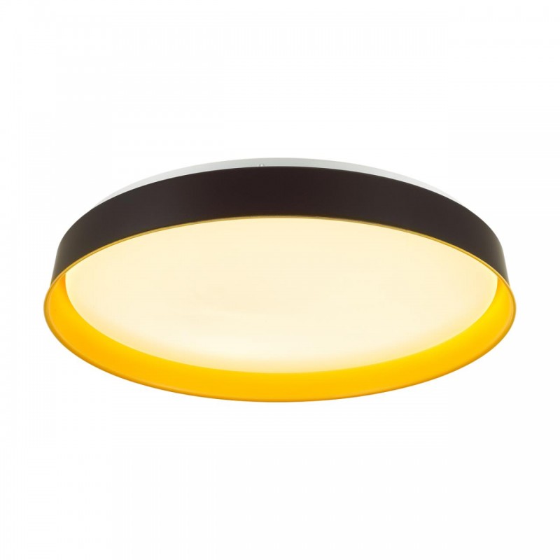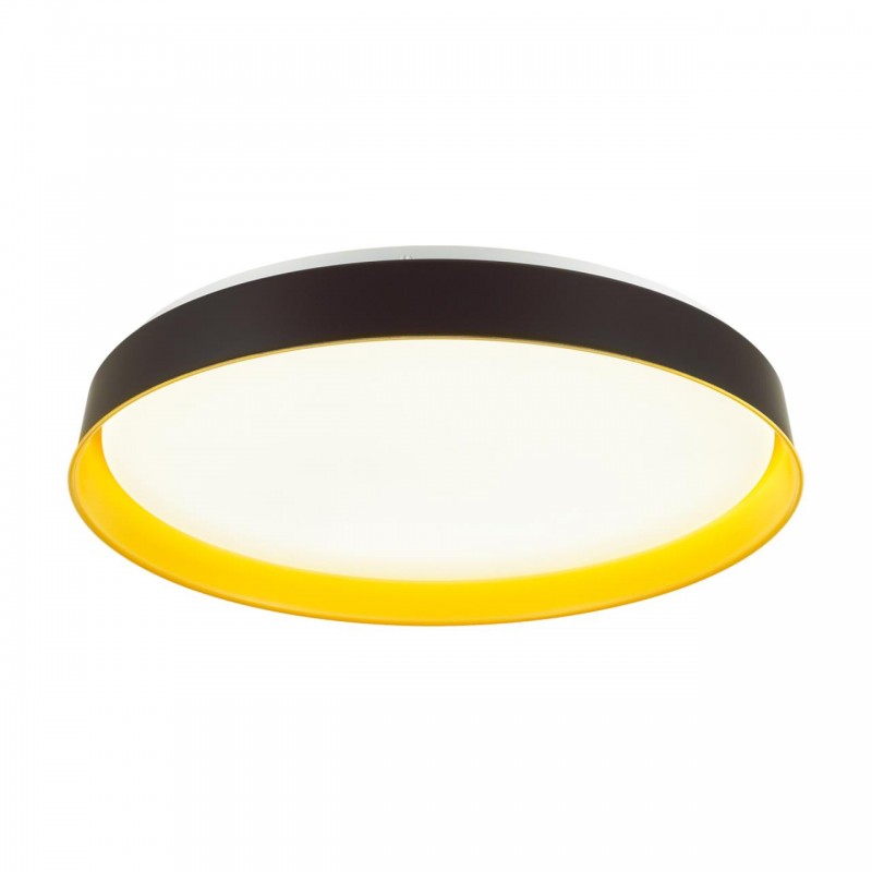 Светильник 7711/EL линии TUNA YELLOW состоит из металлического основания (базы) и пластикового рассеивателя. Материал рассеивателя - высококачественный пластик марки PMMA 2.0 белого цвета с матовой поверхностью, без текстуры. Пластик обеспечивает светильнику равномерное рассеивание и хорошее светопропускание. Форма плафона: круглая, декорирована ободом из пластика белого и желтого цветов. Степень защиты IP43 позволяет использовать светильник в определенных зонах влажных помещений. В комплект входит заменяемый LED модуль с линзами, мощностью 70Вт, которая соответствует лампе накаливания 610Вт. А также пульт ДУ (с креплением на стену), с помощью которого осуществляется плавное изменение цветовой температуры 3000-6000К, изменение яркости, переход в режим переключения теплого/белого/холодного/ночного света. Светильник имеет функцию "память".