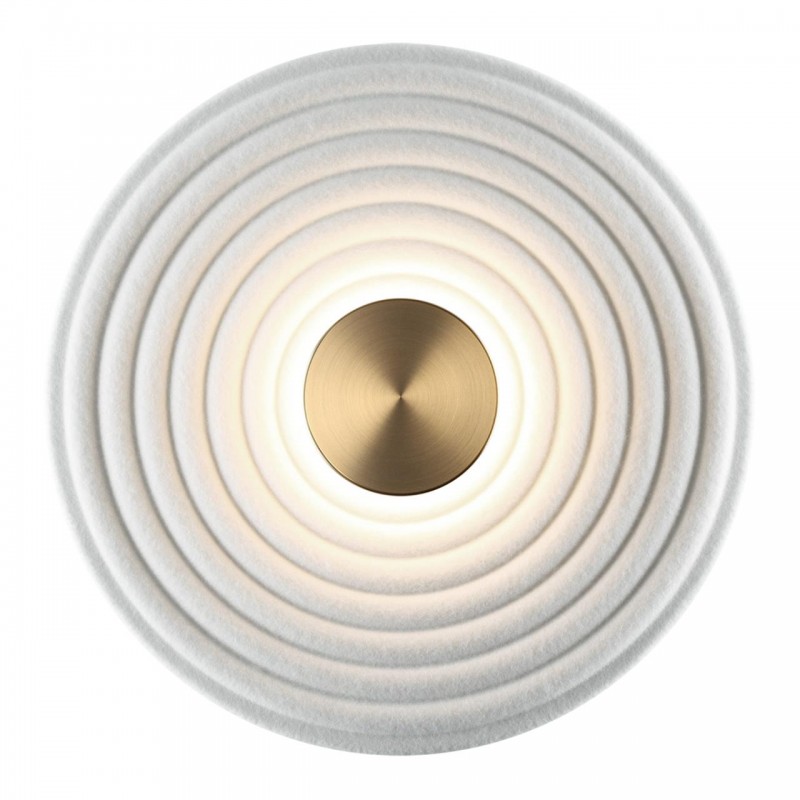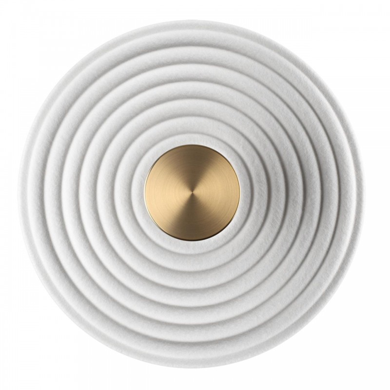 Фетр — новый, набирающий популярность материал благодаря его приятным тактильным качествам, цветовому многообразию и звукопоглощающим свойствам. Мы создали фетровую линию Felt с эффектом отраженного света для комфортного освещения. В настенном светильнике используется фетр, декорированный кругами.