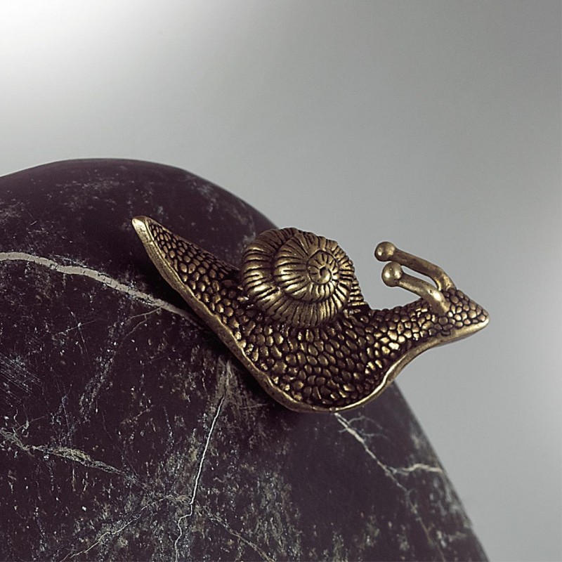 В светильниках Valley, выполненных в природной форме, используется мрамор Bidasar Green/Rain Forest, оттенки которого могут варьироваться от темно-зеленого до светлого с прожилками от белого цвета до коричневого. В комплект входит съемный декорна магните в виде улитки из настоящей латуни.