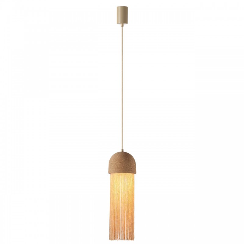 Cork - линия в новом материале в природном оттенке натуральной пробки с тактильно приятной фактурой. У подвесного светильника используется бахрома из нитей, создающая оригинальный эффект и комфортную уютную атмосферу.