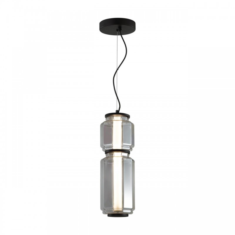 Ультрасовременная линия светильников JAM выполнена в стиле хай-тек. Стеклянные формы плафонов с геометричными гранями нанизаны на светодиодные акриловые трубки. Дымчатое стекло (цвет smoky) минималистично смотрится в сочетании с матовым черным металлом и белыми матовыми трубками. Интересной особенностью обладают малый и средний подвесы в линии — их можно использовать и как бра и как потолочный подвес благодаря универсальному креплению 2 в 1.