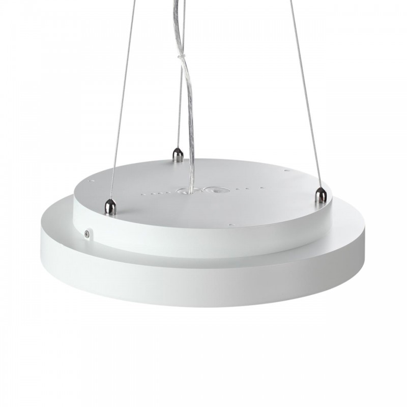 Тросы подвесного крепления для модели QUANTUM LED выполнены из металла. Потолочная металлическая чаша выкрашена в цвет корпуса светильника - снежно-белый. Питающий провод - белого цвета.