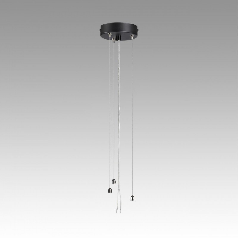 Тросы подвесного крепления для модели QUANTUM LED выполнены из металла. Потолочная металлическая чаша выкрашена в цвет корпуса светильника - угольно-черный. Питающий провод - белого цвета.