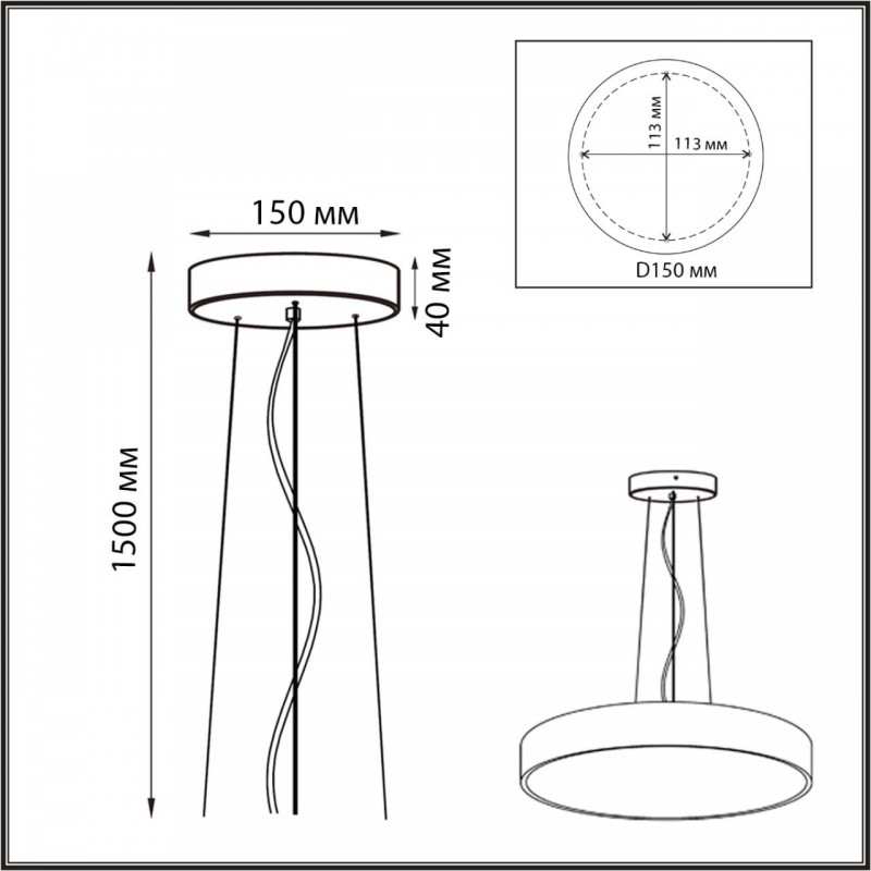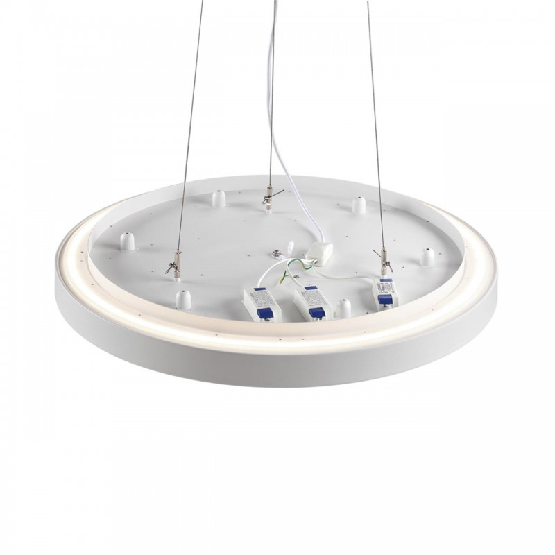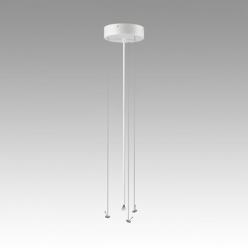 Тросы подвесного крепления для модели QUASAR LED выполнены из металла. Потолочная металлическая чаша выкрашена в цвет корпуса светильника - снежно-белый. Питающий провод - белого цвета.