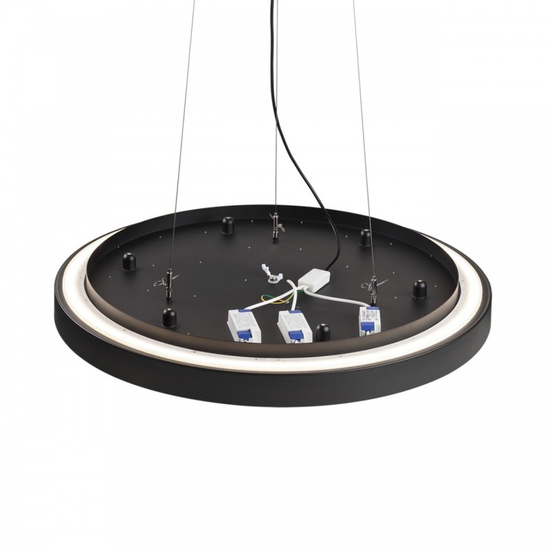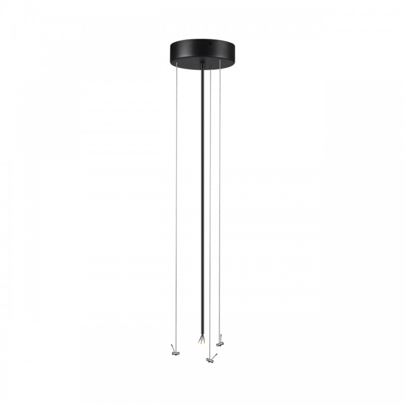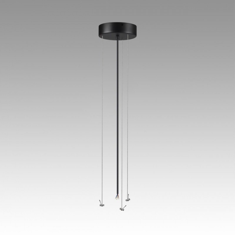 Тросы подвесного крепление для модели QUASAR LED выполнены из металла в приятной на ощупь силиконовой оплетке. Питающий провод и потолочная чаша выполнены в цвете внешнего контура корпуса светильника - угольно-черном.