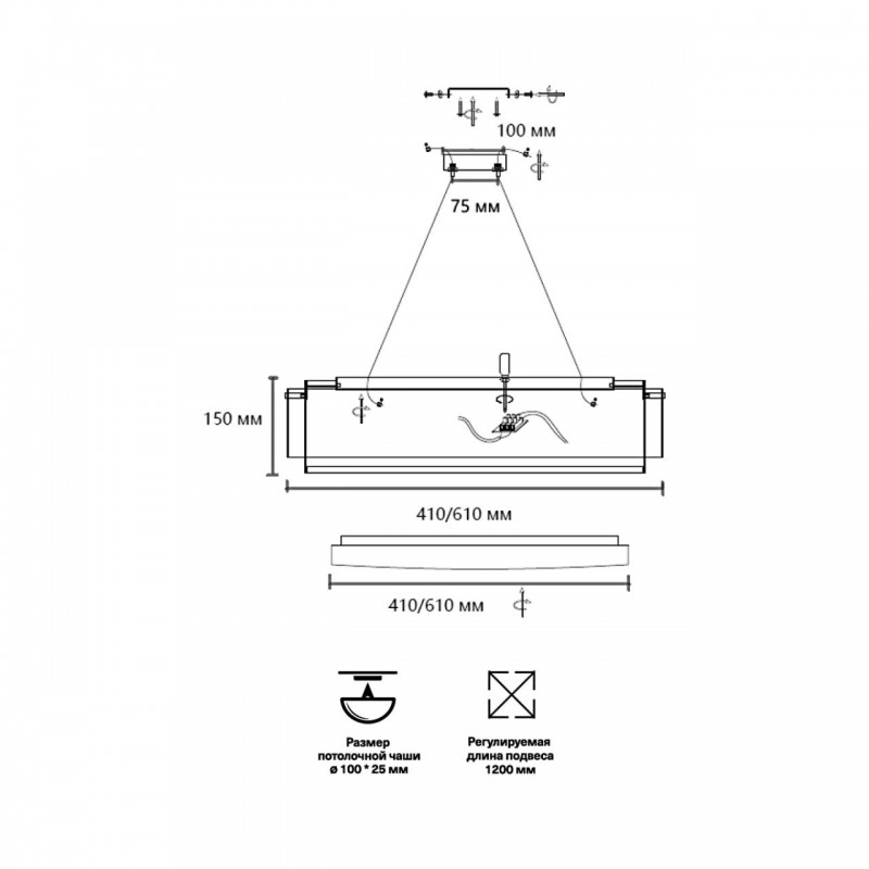 Тросы подвесного крепление для модели ANTEY выполнены из металла в приятной на ощупь силиконовой оплетке. Питающий провод и потолочная чаша выполнены в цвете внешнего контура корпуса светильника - угольно-черном.