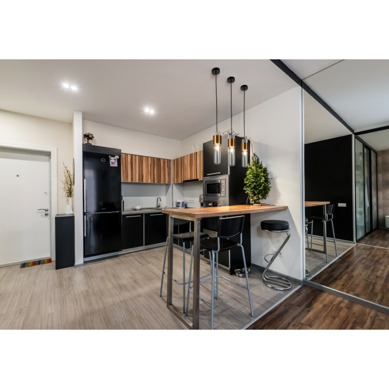 Акцентное освещение столь популярное сегодня отвечает не только функциональным потребностям, но и становится самостоятельным элементом декора как серия светильников Botello. Черная арматура выполнена из металла и прекрасно гармонирует с декоративной вставкой, окрашенной в оттенок золота. Такой дуэт напоминает об американских индустриальных интерьерах 20-х годов. Рельефный цилиндрический плафон из прозрачного стекла направляет свет, обеспечивая яркое зональное освещение. Вы можете использовать светильник в одиночку или составлять световые группы, чтобы расставить акценты в стиле лофт, минимализм, модерн, сканди.