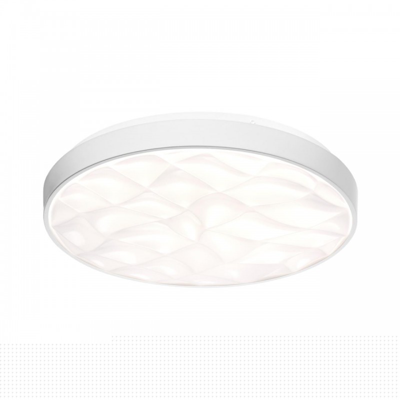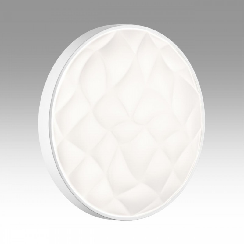 Светильник 7672/ELN линии GITUM состоит из металлического основания (базы) и пластикового рассеивателя. Материал рассеивателя - высококачественный пластик марки PMMA 2.0 белого цвета с матовой поверхностью. Пластик обеспечивает светильнику равномерное рассеивание и хорошее светопропускание. Форма плафона: круглая, декорирована рельефной структурой и ободом из пластика белого цвета. Степень защиты IP43 позволяет использовать светильник в определенных зонах влажных помещений. В комплект входит LED модуль с линзами, мощностью 76Вт, которая соответствует лампе накаливания 740Вт. А также переключатель температуры цвета (ССT) на драйвере, с помощью которого осуществляется изменение цветовой температуры 3000/4000/6000К и переход светильника в режим теплого/белого/холодного света. Для установки необходимого режима рекомендуется использовать удлиненный тонкий предмет типа небольшой отвертки.
