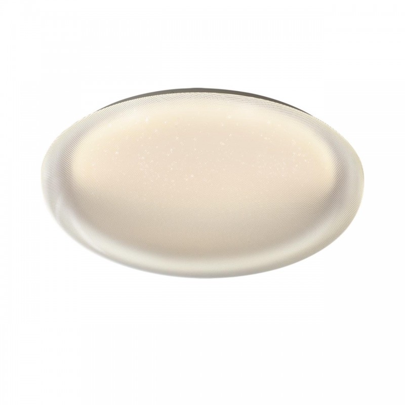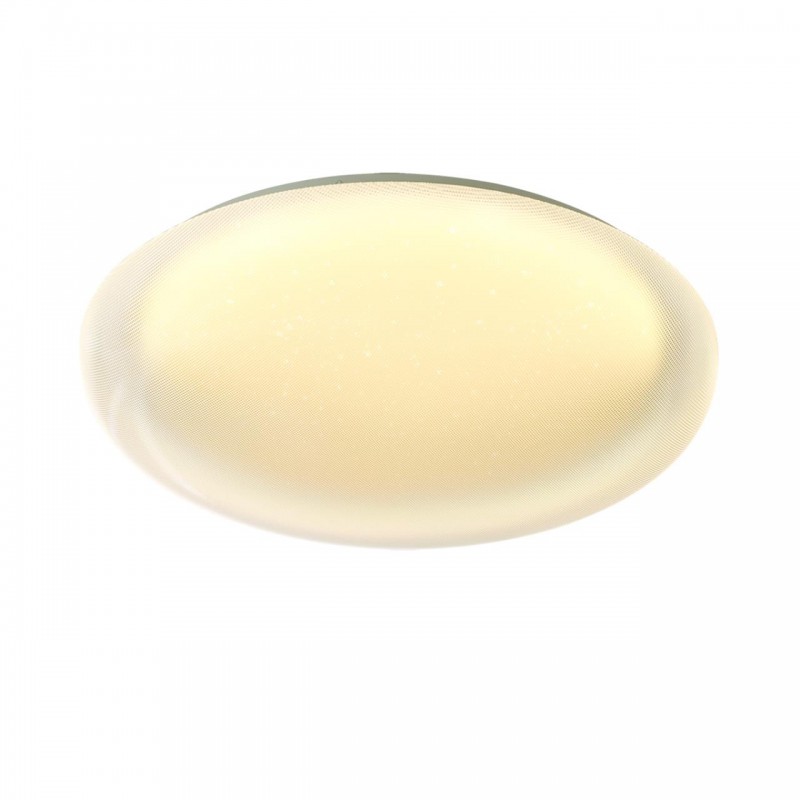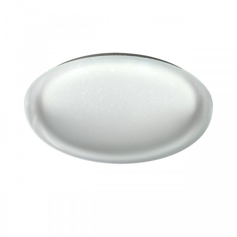 Светильник 7775/ELN линии JOLLY состоит из металлического основания (базы) и пластикового рассеивателя. Материал рассеивателя - высококачественный акрил белого цвета с глянцевой поверхностью, обеспечивающий светильнику равномерное рассеивание и хорошее светопропускание. Форма плафона: круглая, декорирована прозрачными точками, придающими включенному светильнику красивый эффект "звездного мерцания" и переливания. Степень защиты IP43 позволяет использовать светильник в определенных зонах влажных помещений. В комплект входит LED модуль с линзами, мощностью 76Вт, которая соответствует лампе накаливания 740Вт. А также переключатель температуры цвета (ССT) на драйвере, с помощью которого осуществляется изменение цветовой температуры 3000/4000/6000К и переход светильника в режим теплого/белого/холодного света. Для установки необходимого режима рекомендуется использовать удлиненный тонкий предмет типа небольшой отвертки.