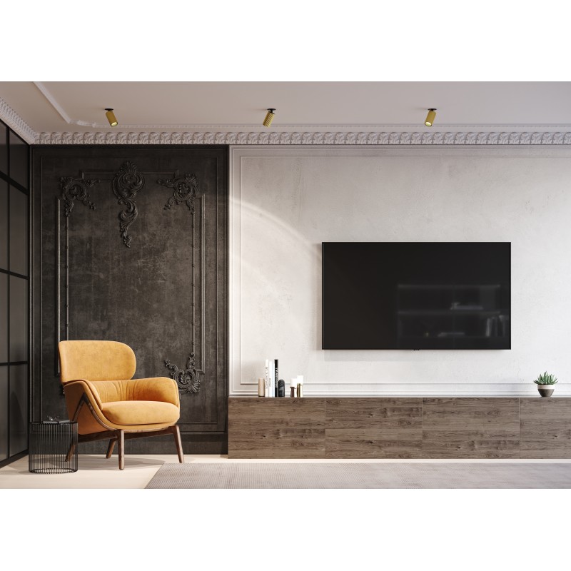 Дизайнерская серия. Графичая фактура. Поворотный механизм определенных моделей. В ассортименте накладные светильники, со встраиваемой чашей, настенные, подвесные, а также трековые модели для однофазного шинопровода. Три трендовых оттенка: чёрный, белый и латунь. Источник света - сменная лампа с цоколем GU10.