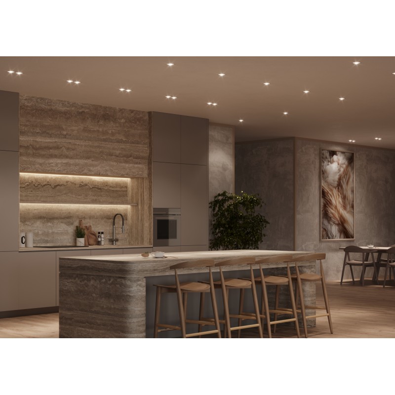 Предназначен для установки в натяжной ПВХ потолок. Состоит из основания, термокольца и цоколя GX53. Основание и цоколь выполнены из термостойкого и ударопрочного АВС пластика. Монтаж производится методом втяжки. Конструкция светильника позволяет легко стыковать между собой несколько оснований, благодаря чему можно создавать комбинации из нескольких светильников.