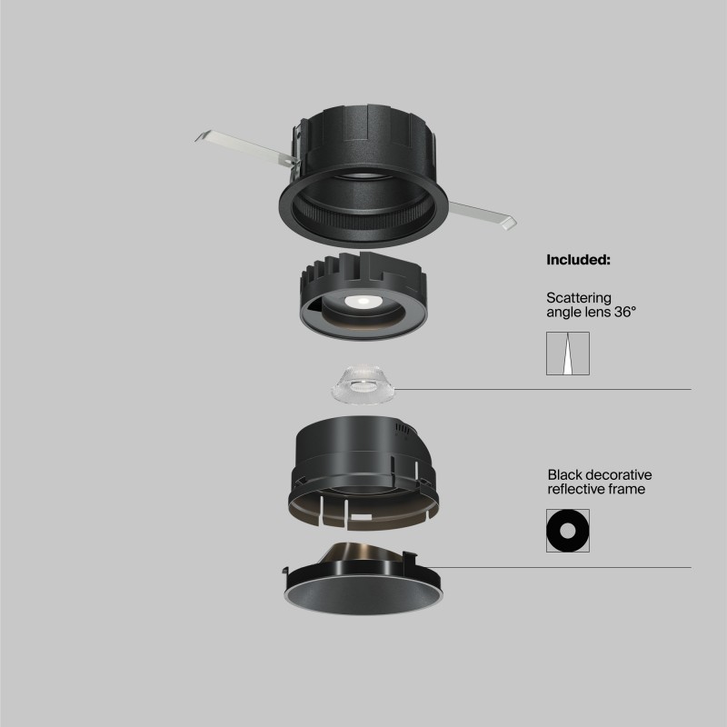 Встроенный утопленный источник света LED, обеспечивает мягкое рассеивание света. Поворотный механизм, позволит организовать акцентную подсветку зон и предметов интерьера. Сменные линзы и фильтры позволят изменить стандартный угол 36° на выбор от 15°-50° и сделать освещение более комфортным. Сменные рефлекторы в ассортименте, позволят подобрать цветовую гамму для большинства трендовых интерьеров.