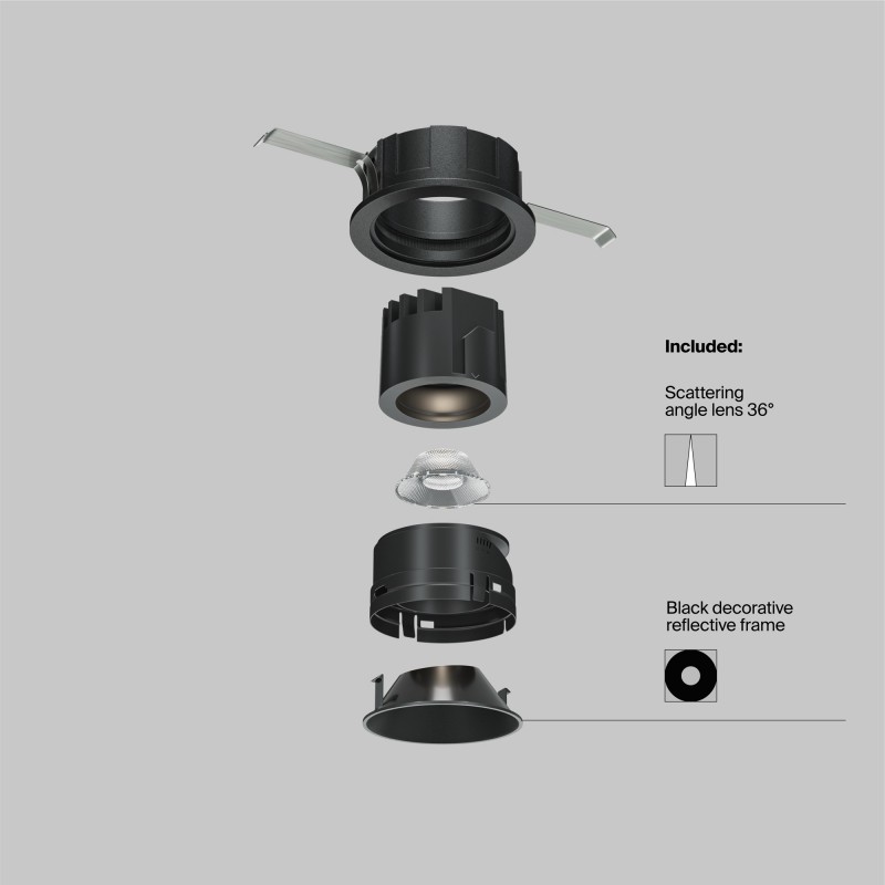 Встроенный утопленный источник света LED, обеспечивает мягкое рассеивание света. Поворотный механизм, позволит организовать акцентную подсветку зон и предметов интерьера. Сменные линзы и фильтры позволят изменить стандартный угол 36° на выбор от 15°-50° и сделать освещение более комфортным. Сменные рефлекторы в ассортименте, позволят подобрать цветовую гамму для большинства трендовых интерьеров.