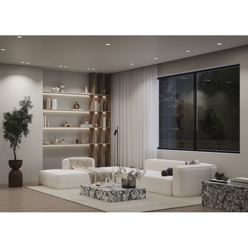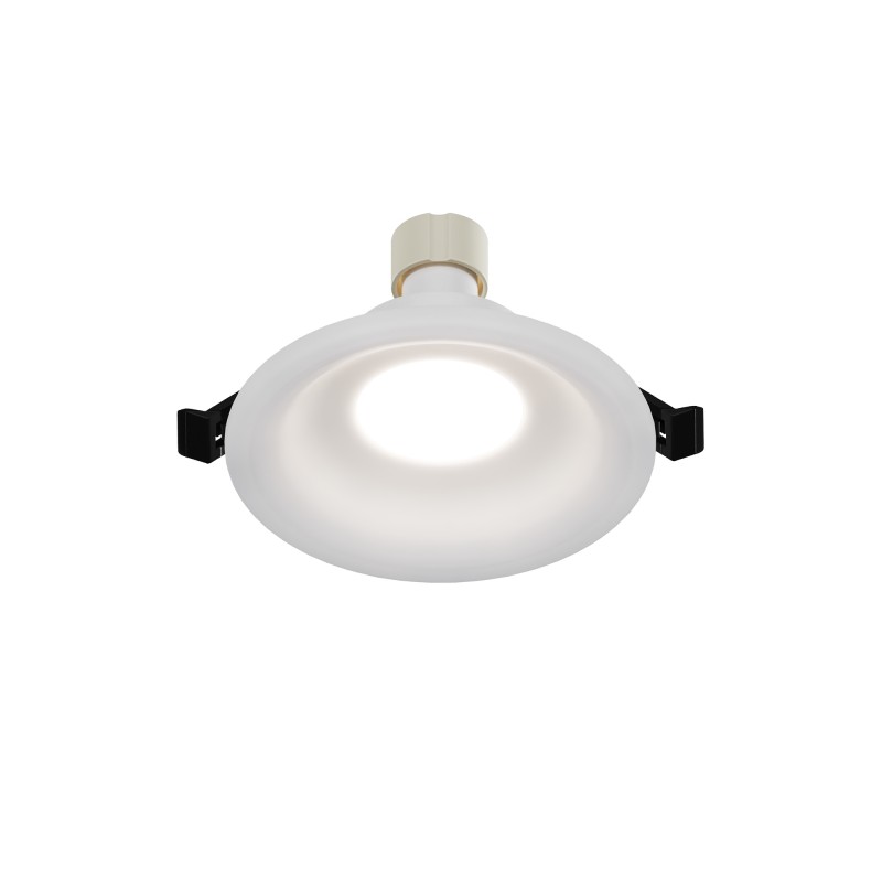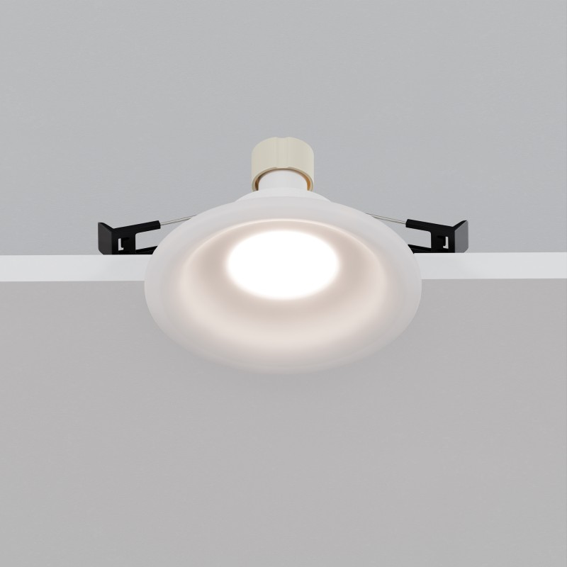 Корпус из алюминиевого сплава, покрытый акрилом. Сияющий эффект при свечении. Цвет – нежно-белый. Лампа GU10. Отсутствие стопорного кольца.